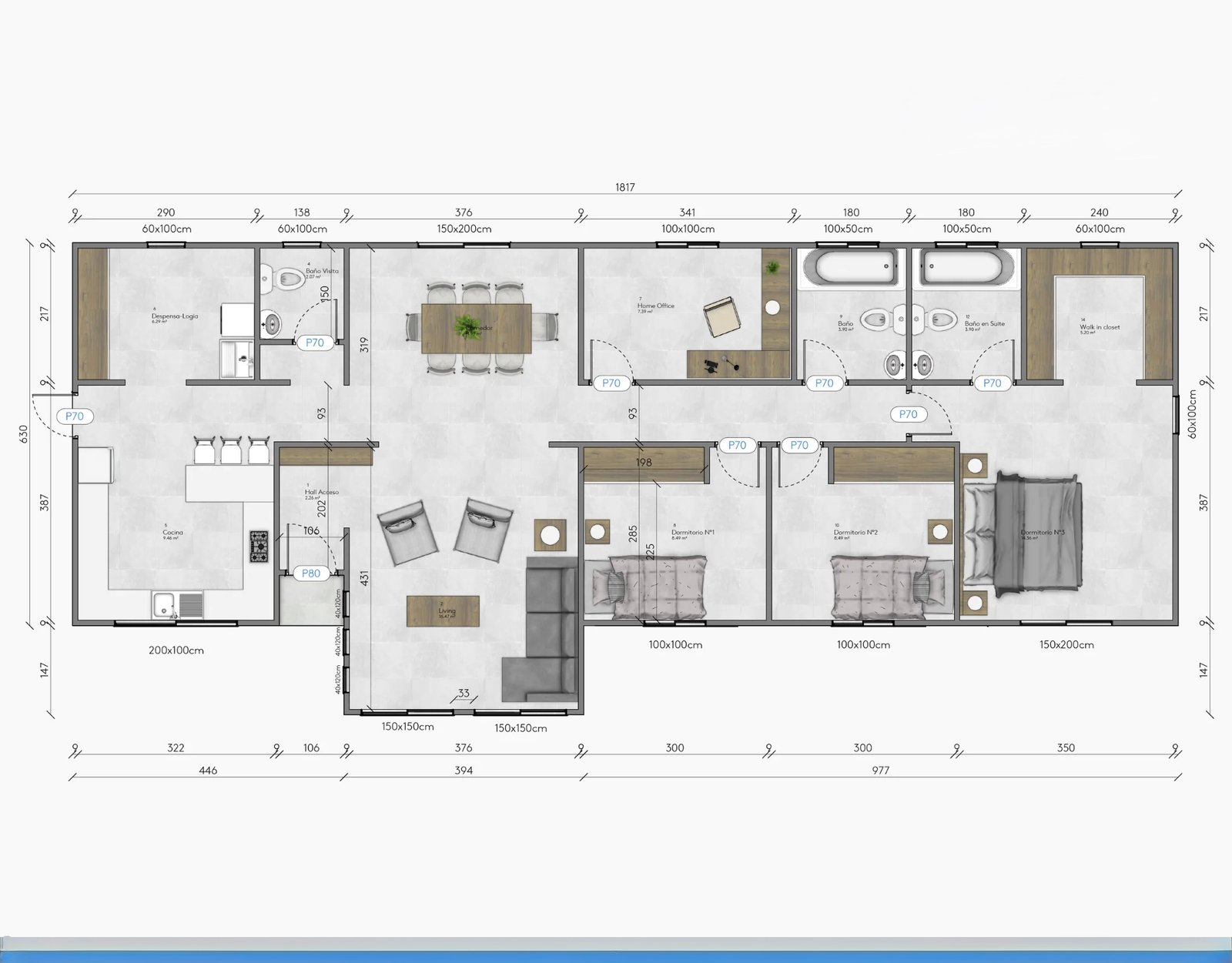 Un hogar donde los dormitorios se encuentran en los extremos, creando un espacio central para unir a la familia.